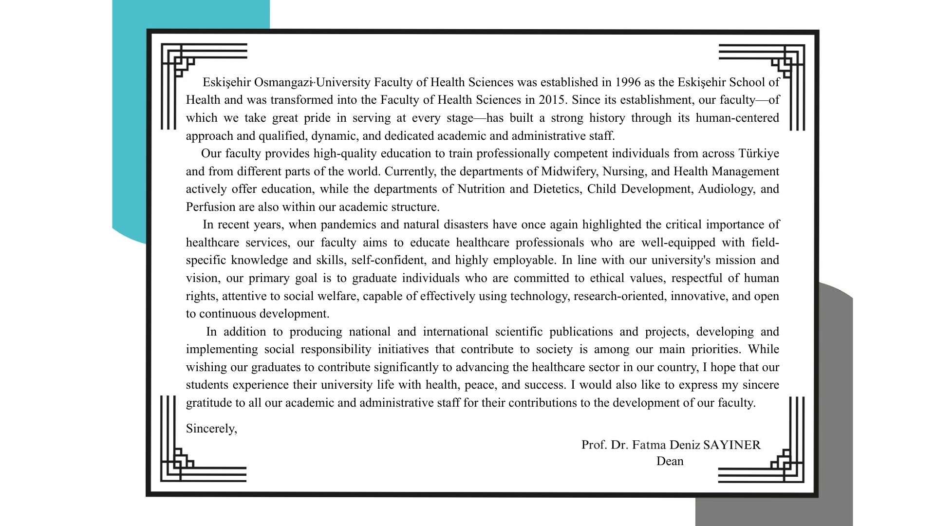 Mission and Vision of the Faculty of Health Sciences
